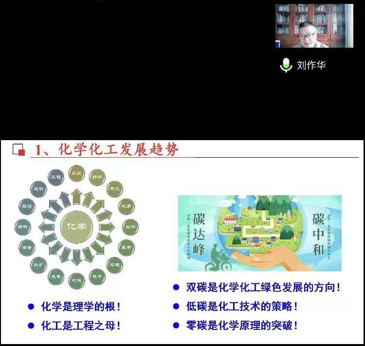 首先,由副院长刘作华展示了代表整个化工学院宣讲的PPT,从国家战略的宏观需要和学生未来发展个体需要以及学院为促进学生发展提供的软件和硬件平台方面进行了宣讲。