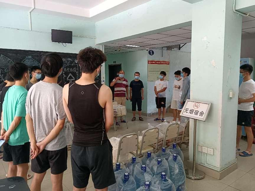 8月21日,由党委副书记李泽全、副院长胡宝山、实验教学示范中心副主任杨文静组成的第一批疫情防控志愿者,来不及安排好家中的老小,来不及补充处于中风险地区的家中补给,毅然决然的第一时间深入隔离管控区,李泽全副书记和胡宝山副院长入住B区十舍,与留校隔离学生同吃同住。全力投身到解决学生生活问题、组织全员核酸检测、落实物资运送、疫情风险排查、值班值守等应急防疫工作中。