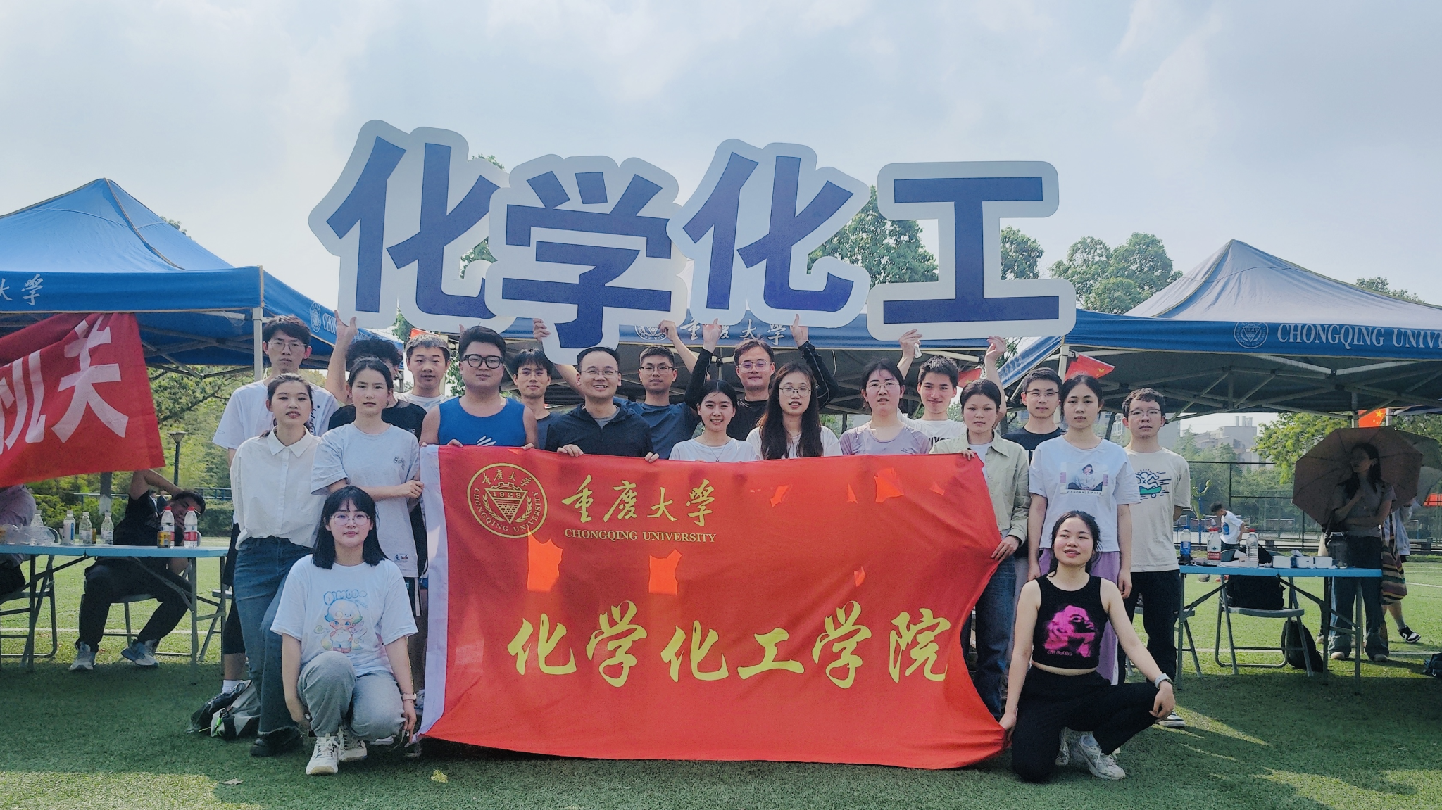 方阵迈着整齐矫健的步伐入场,他们步伐坚定、神采奕奕,高昂嘹亮的口号尽显蓬勃朝气和青春活力。化院学子手持五星红旗,高举“化学化工创造美好未来”标语,是化院人秉持信念,不断跃向未知、追求卓越的进取精神。
