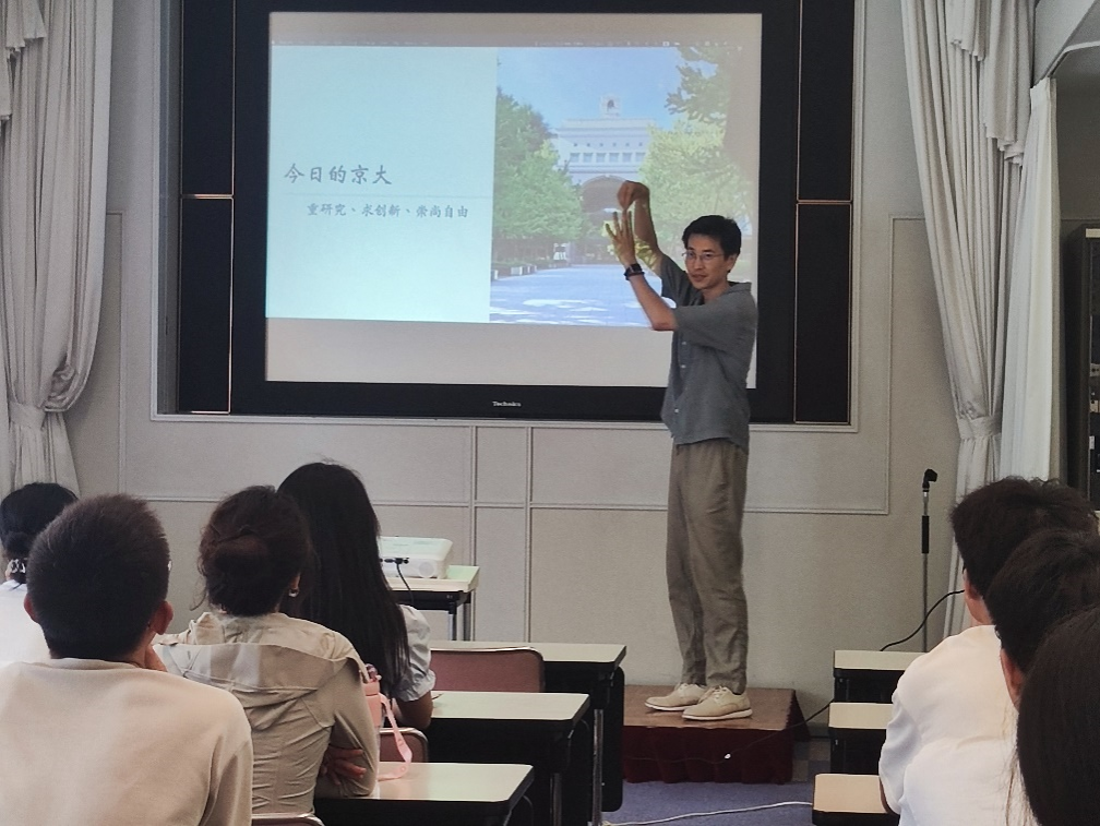 访学之旅的第一阶段,探访日本顶尖学府、“科学家的摇篮”——京都大学。接待者宝彦老师简要介绍了京大的背景及现状,并展望未来。同时对京都大学的“自律精神”、“自由学风”等方面进行细致的剖析与阐述,为访学团开启了一场充实而深刻的参观交流之旅。