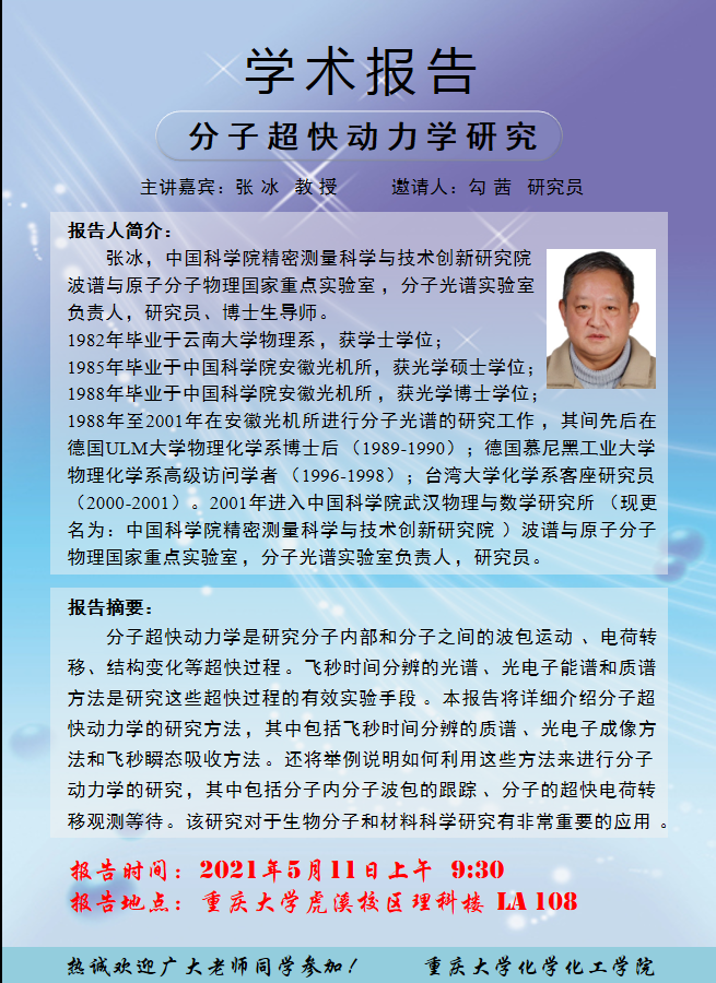 分子超快动力学研究 张冰教授