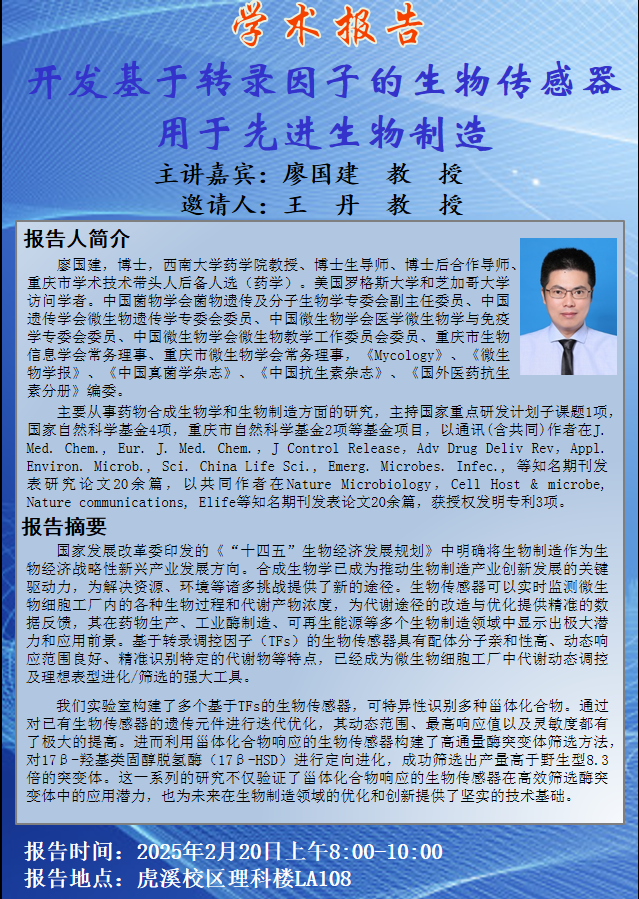 开发基于转录因子的生物传感器用于先进生物制造