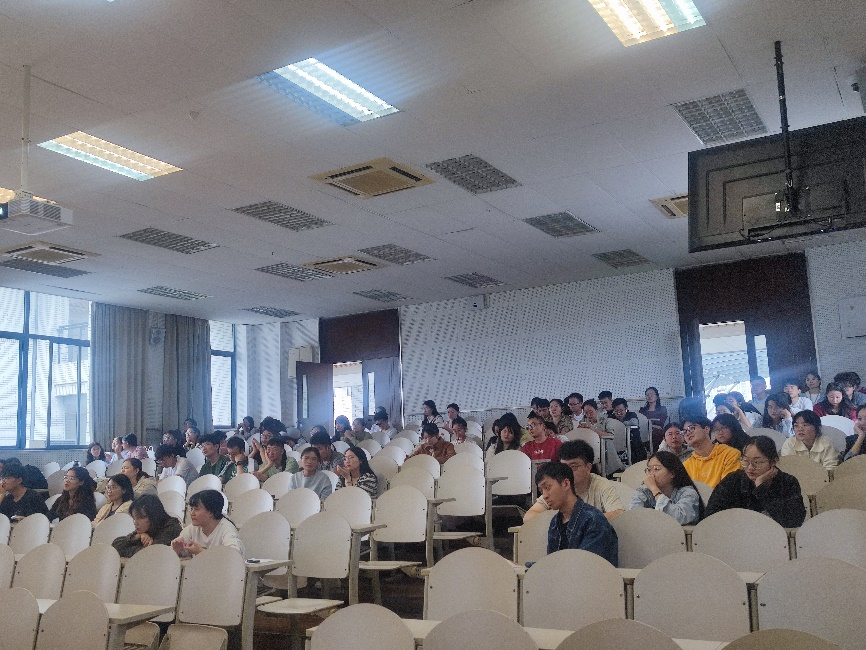 学生工作办公室主任谢丽、研究生兼职辅导员刘庆飞和全体2024届硕博毕业生同学,会议由谢丽老师主持。