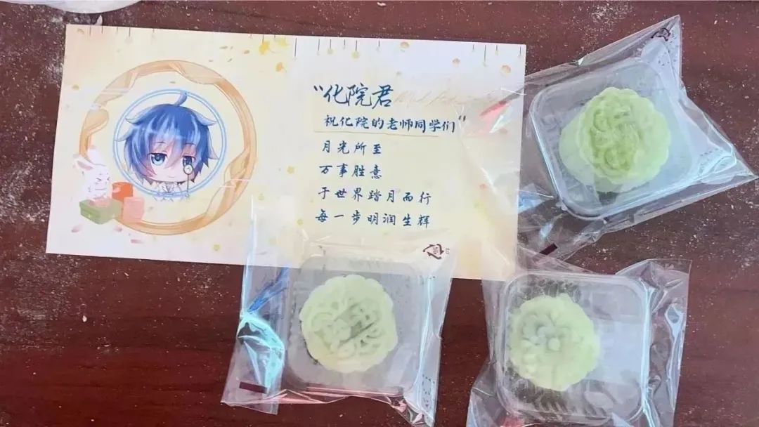 活动结束后,老师和同学们收获了自己亲手制作的月饼以及化院专属贺卡。